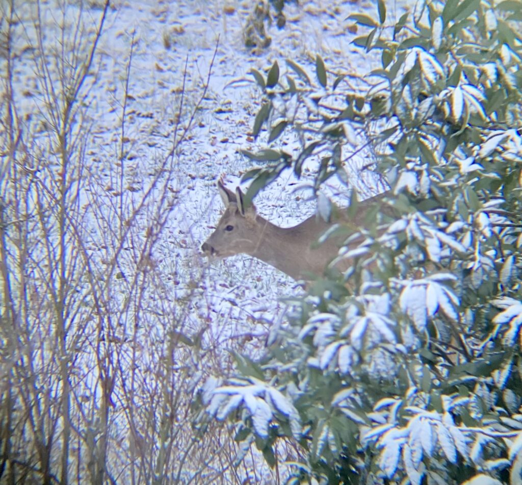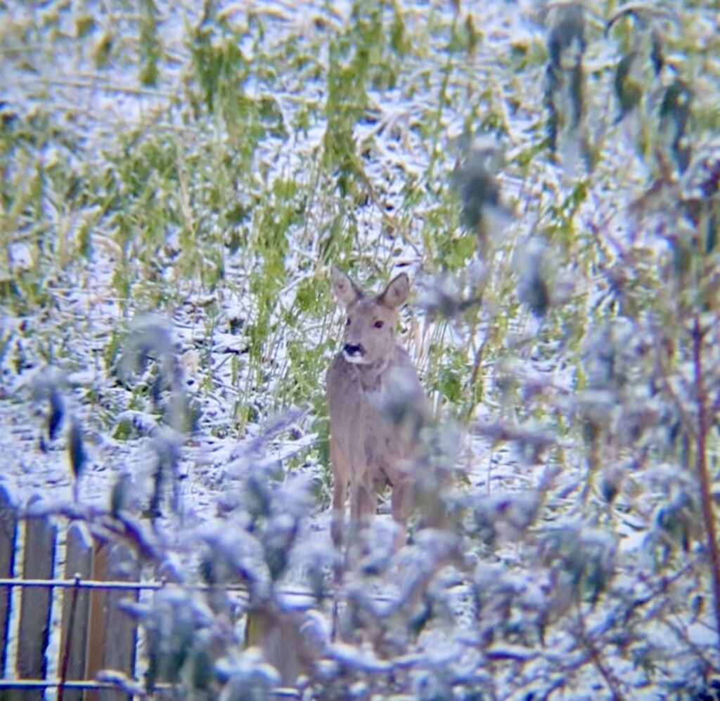 Zwei Rehe tauchten direkt hinter dem Gartenzaun auf und verliehen dem Moment etwas Märchenhaftes.