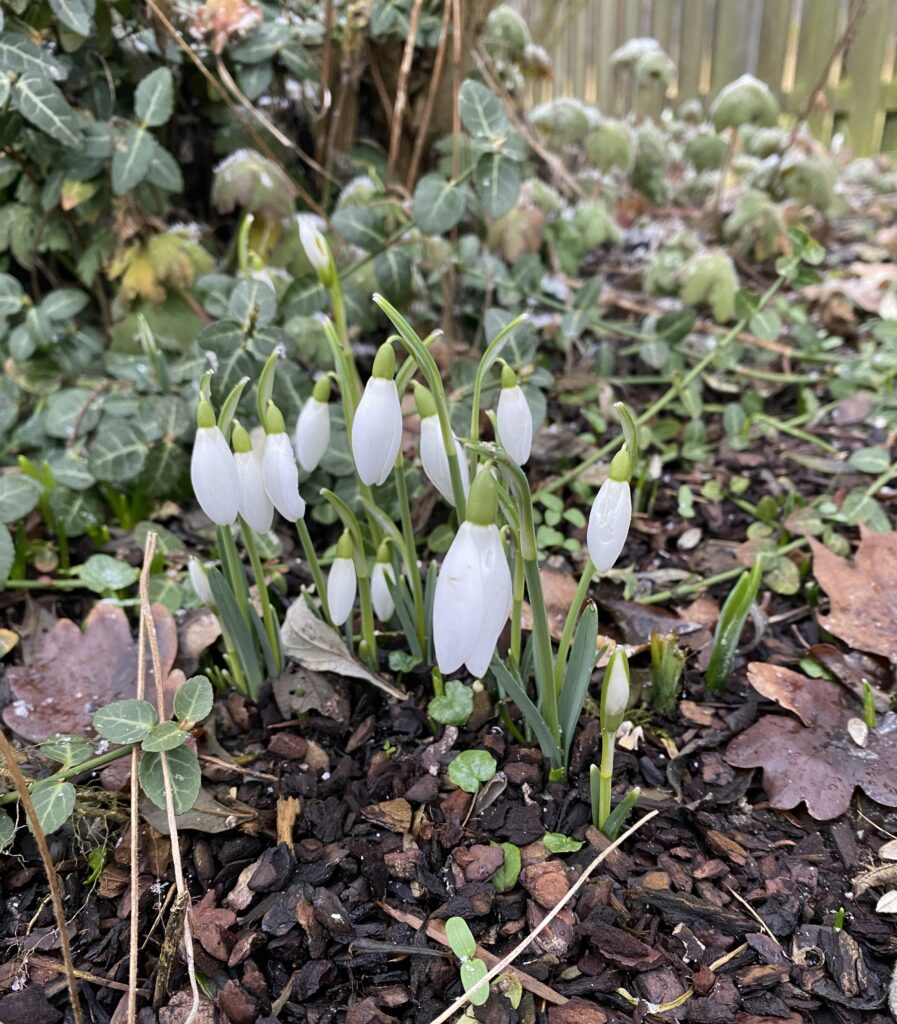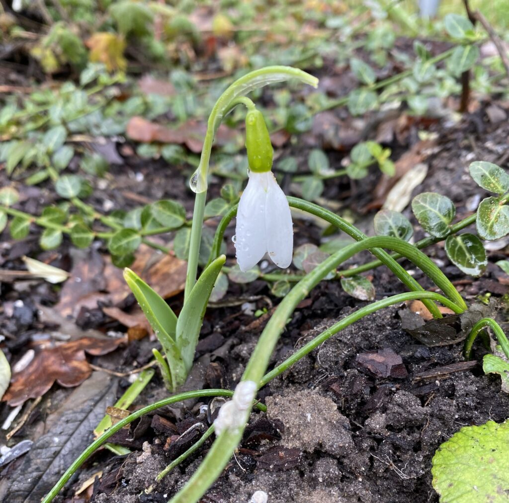 Die ersten Schneeglöckchen zeigen ihre Blüten.